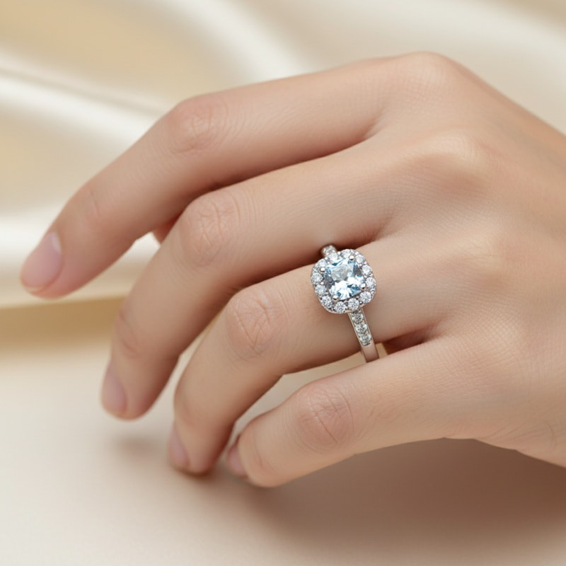 18ct White Gold 3.48g Central Stone: 0.5ct, VS2, Light Blue Natural Diamond Side Stones: 20 White Natural Diamonds 0.38ct total Size: "P" POA |