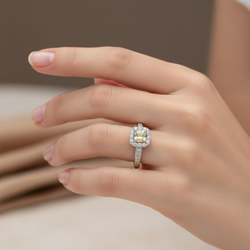 18ct White Gold Ring with Yellow Diamond 1.18ct