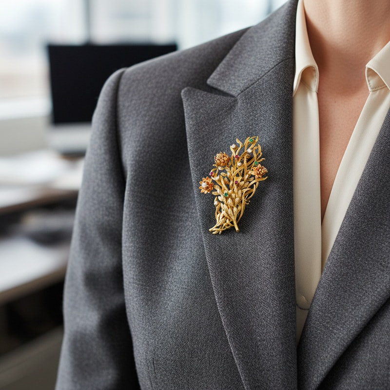 18ct White Gold Brooch with Diamonds, Emerald and Ruby